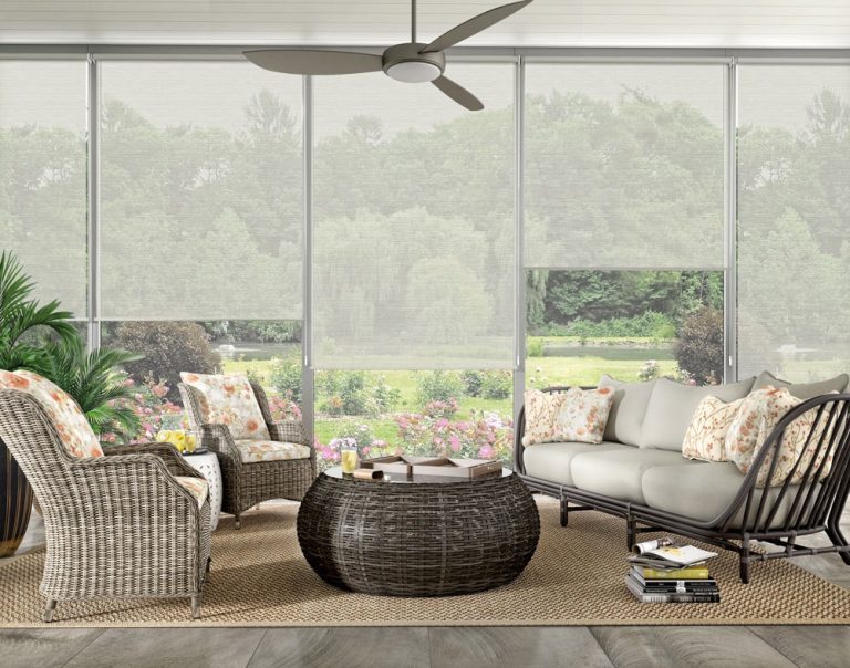 ستائر واقية من الشمس مصنوعة من الأقمشة التي تقلل من شدة الضوء القادم من الخارج ، كما أنها تعمل على الحماية من أشعة الشمس الضارة